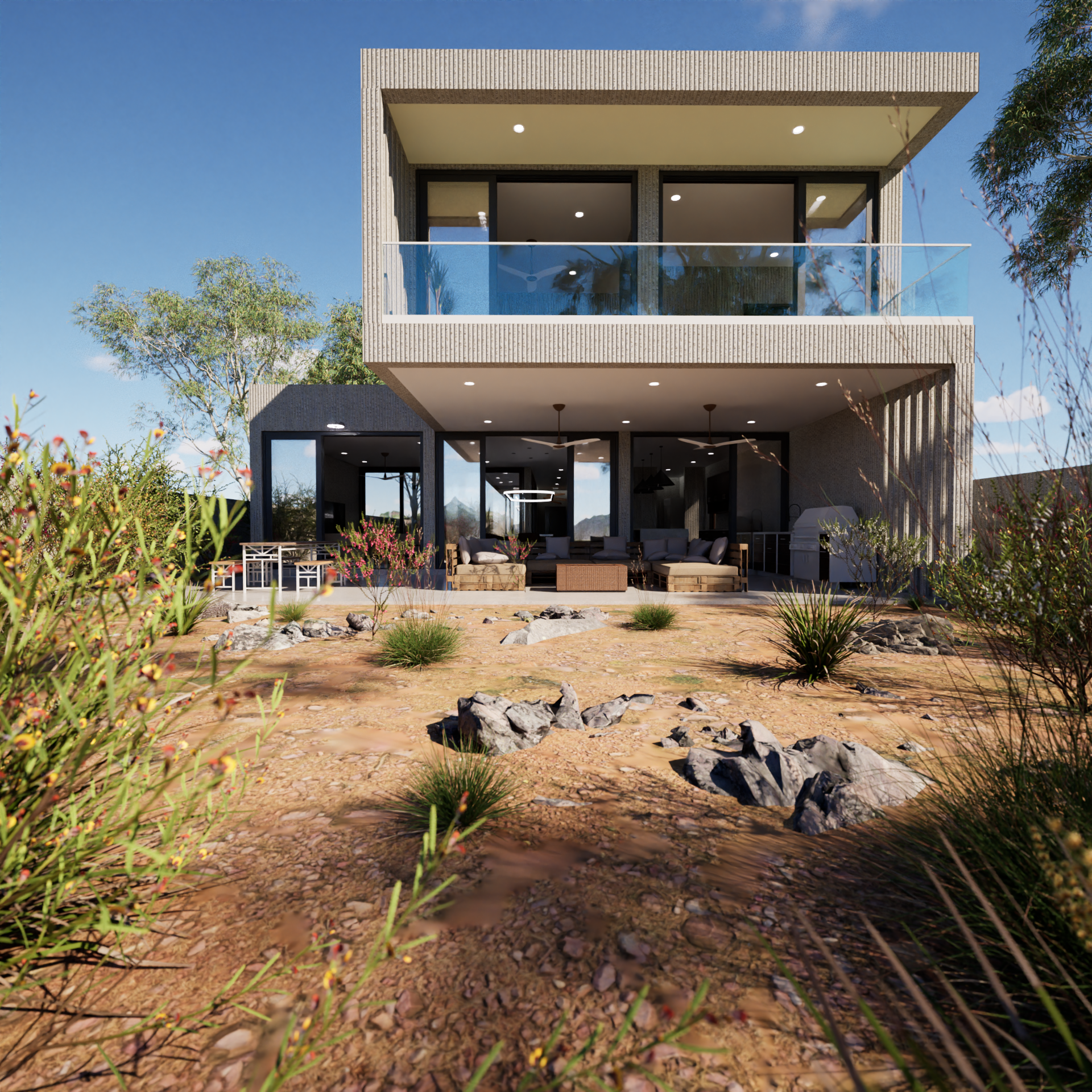 Program: TWO -STORY custom home with 3 BEDROOMS, 2.5 bathroom, kitchen, PREP KITCHEN, GYM, AND OUTDOOR DINING